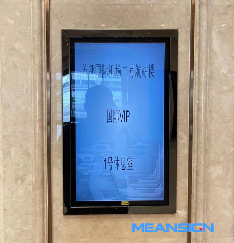在2號(hào)航站樓VIP休息區(qū),每個(gè)休息室門(mén)口安裝信息發(fā)布一體機(jī),采用嵌入式豎屏包邊安裝方式,與機(jī)場(chǎng)裝修風(fēng)格相融合,更加美觀高端大氣。通過(guò)遠(yuǎn)程統(tǒng)一控制顯示屏信息發(fā)布,顯示機(jī)場(chǎng)名稱,休息室名稱,作為一個(gè)休息室指示數(shù)字標(biāo)牌。除外,還可以通過(guò)信息發(fā)布后臺(tái),將更多編輯好的多媒體內(nèi)容,發(fā)布到所有的信息發(fā)布一體機(jī)上,實(shí)現(xiàn)分屏播放,滿足不同的使用需求。